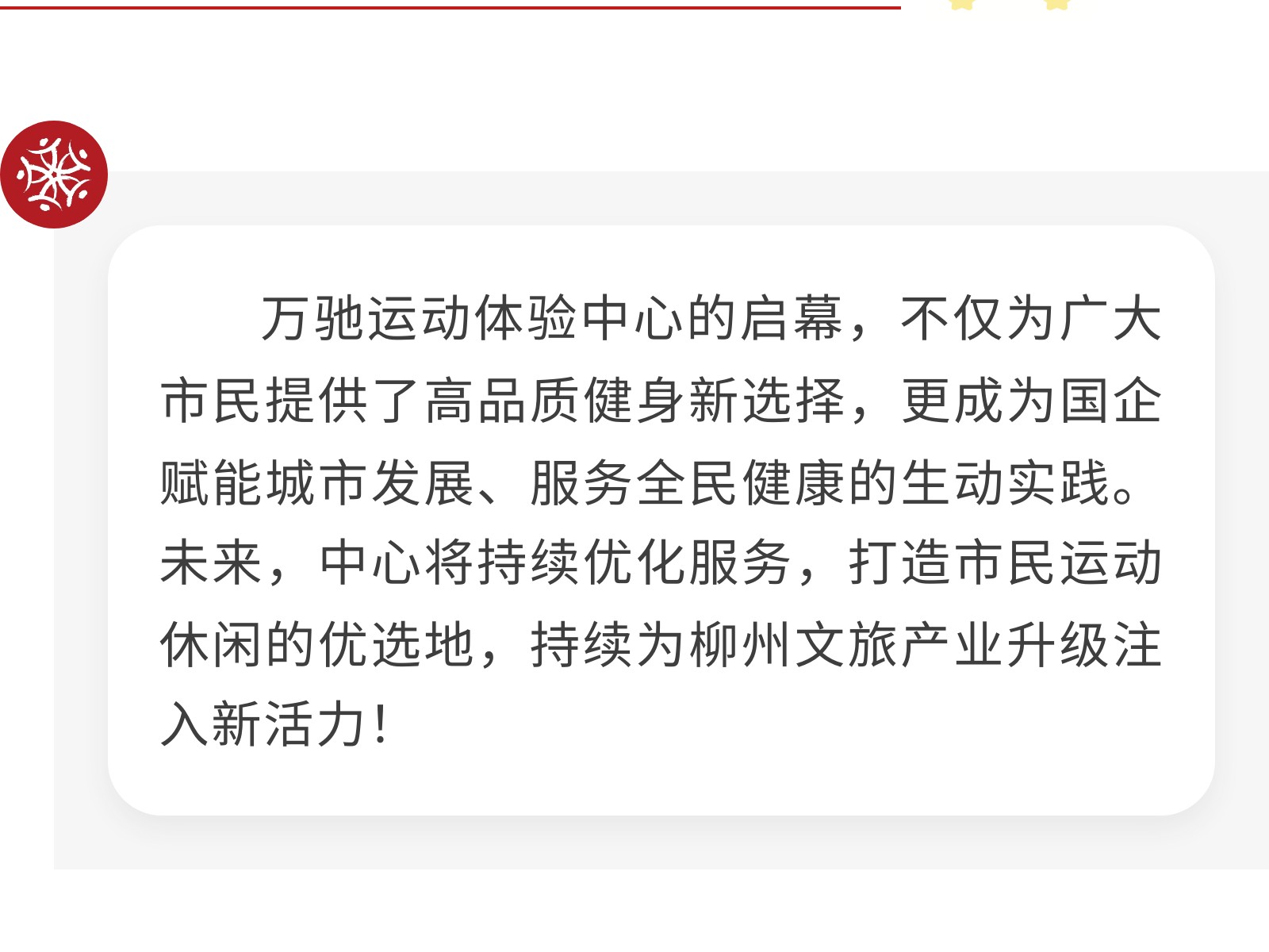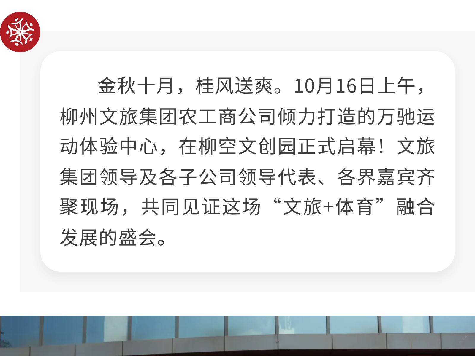 【萬(wàn)序亨通,馳志青云】柳空文創(chuàng)園萬(wàn)馳運(yùn)動(dòng)體驗(yàn)中心啟幕儀式圓滿舉行! 發(fā)布時(shí)間:2025年10月16日 10時(shí)來(lái)源:本站原創(chuàng)瀏覽:36 人次