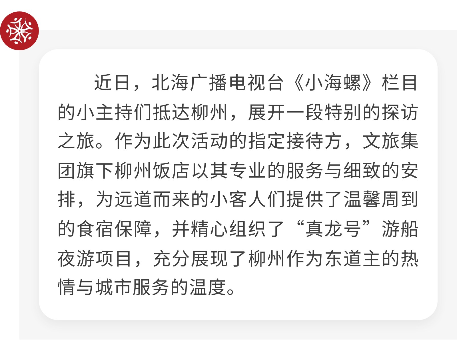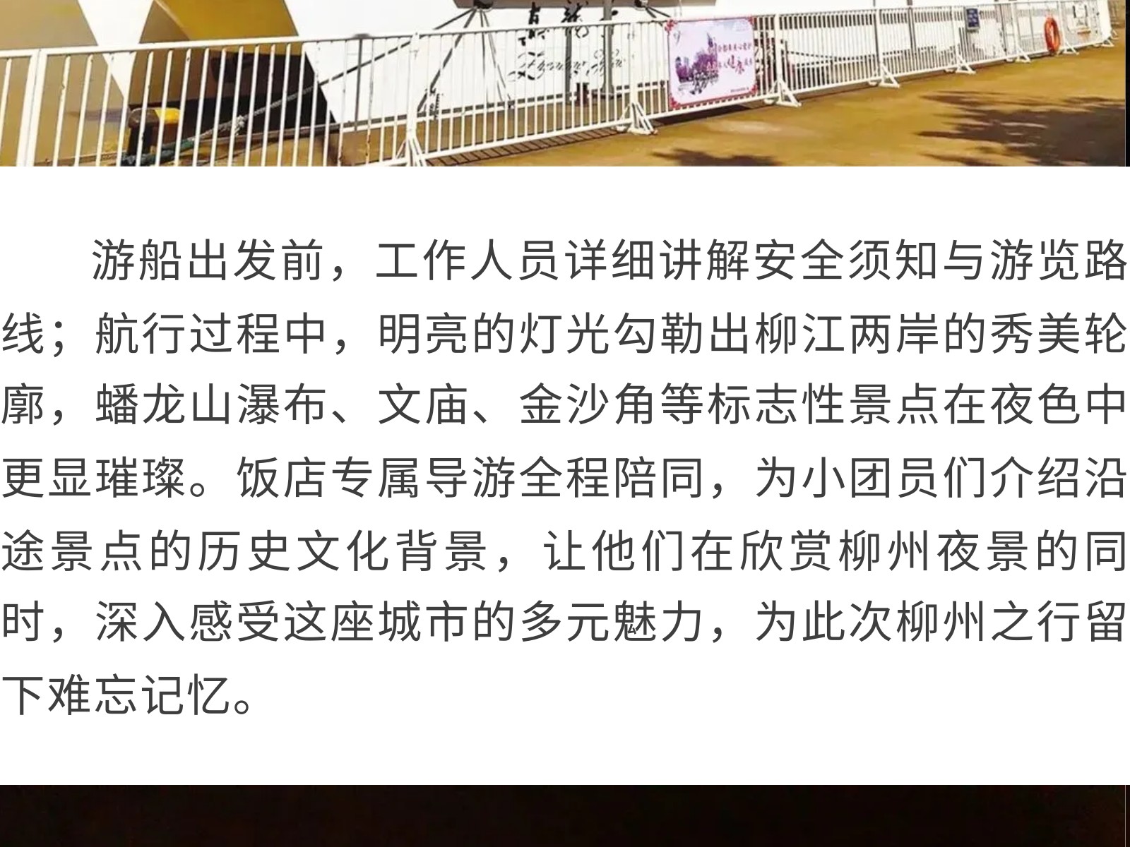柳州飯店暖心接待北?!靶『B荨?,乘“真龍?zhí)枴惫操p柳江夜景暢談雙城情誼 發(fā)布時間:2025年11月07日 10時來源:本站原創(chuàng)瀏覽:30 人次